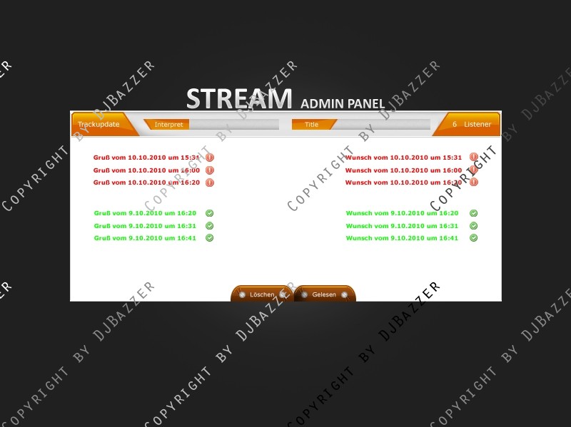 Einmal die Admin Seite, die die Moderatoren/Deejays oder Generell Admins einsehen können, wo Sie die Gruß und Wunschbox auslesen können und Tracklist schreiben können, auch da, gibts eine Listener Anzeige.